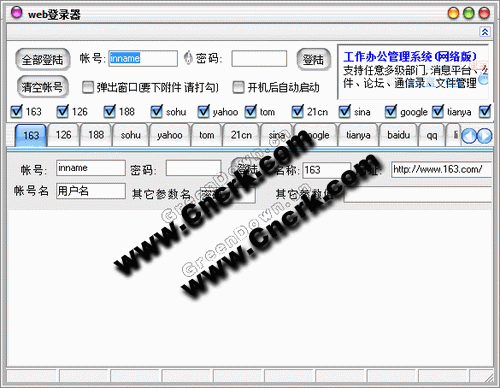 我們經(jīng)常要登錄一些網(wǎng)站,電子郵件之類每次都要輸入密碼,真的很麻煩web網(wǎng)站登陸器 就是為你解決這一些問題可以一鍵登錄多個帳號同時登陸多個網(wǎng)站同時登錄真是方便極了
