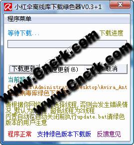 小紅傘離線病毒庫(kù)綠色下載器 V0.3 簡(jiǎn)體中文綠色免費(fèi)版 此離線包我已經(jīng)集成到我的曉月版所有綠色版當(dāng)中。從此大家點(diǎn)擊桌面的升級(jí)病毒庫(kù)后。就可以只點(diǎn)擊"開(kāi)始下載"就行了。下載校驗(yàn)完畢后會(huì)自動(dòng)釋放文件替換病毒。無(wú)需守候去點(diǎn)擊“取消”按鈕了。方便了很多