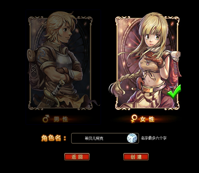 選擇初心者性別,輸入自己想要的名字,點擊“創(chuàng)建”即可