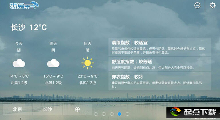 2. 實時天氣溫度,精準(zhǔn)定位,并有舒適度指數(shù)、晨練指數(shù)、穿衣指數(shù),讓生活不被天氣影響;
