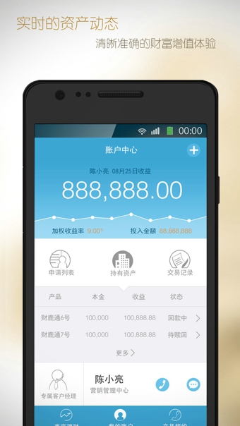 生財(cái)有鹿是金鹿財(cái)行傾力打造的移動(dòng)網(wǎng)絡(luò)投資管理工具,擁有強(qiáng)大的移動(dòng)端功能。通過(guò)該APP,客戶(hù)可自由方便地享受金鹿財(cái)行提供的各項(xiàng)理財(cái)產(chǎn)品、理財(cái)規(guī)劃、財(cái)富管理等方面的服務(wù)。包括支持移動(dòng)查詢(xún)理財(cái)產(chǎn)品信息、提交理財(cái)交易申請(qǐng)、快速查詢(xún)金鹿網(wǎng)點(diǎn)、自動(dòng)生成個(gè)人二維碼、快速綁定心儀的理財(cái)客戶(hù)經(jīng)理等諸多功能。從而為金鹿財(cái)行能向客戶(hù)提供更為優(yōu)越的客戶(hù)體驗(yàn)作出有力的支撐。