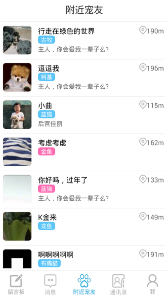 彈幕雷達(dá):最I(lǐng)N遛寵雷達(dá),發(fā)現(xiàn)身邊約遛小伙伴,自帶彈幕神器,圍觀吐槽任君挑選。分享動態(tài):隨時隨地發(fā)布動態(tài),與寵友們互相分享養(yǎng)寵新鮮事。