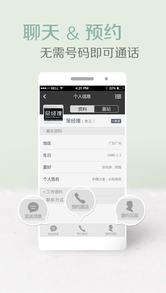 最體貼:預(yù)約通話,預(yù)約見(jiàn)面,無(wú)需號(hào)碼即可通話,辦公小幫手就在這里!