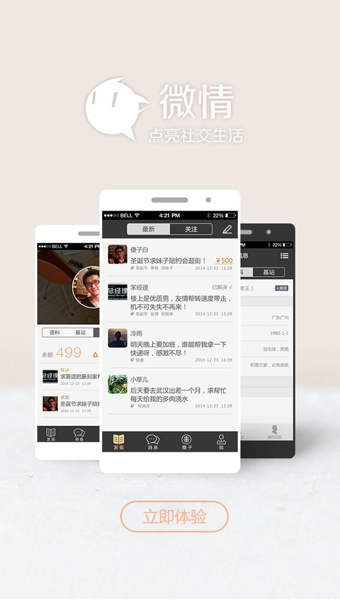 在紛繁的世界里,讓漂泊流浪的你,偷得浮生半日閑,談笑有鴻儒相伴,憂愁有知己相依。微情,點(diǎn)亮你的社交生活。下載微情的六大理由: