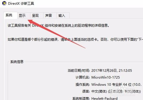 如果要查看DX運(yùn)行是否正常,可以點(diǎn)擊窗口中的“顯示”標(biāo)簽