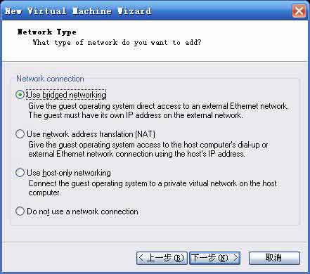 首先,我們建立第一臺虛擬機VMnet0PC,建立時在連接模式選擇處我們選擇橋接網(wǎng)絡如下圖(這里我們并沒有修改默認的虛擬網(wǎng)絡行為),這樣,這臺虛擬機會有一塊連接到VMnet0的虛擬網(wǎng)卡,與真實PC處于同一個網(wǎng)段內(nèi)。