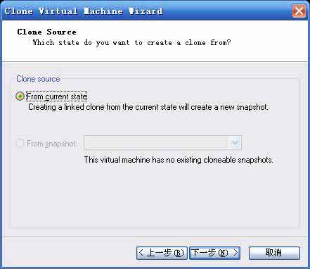 在VMware5.0以前版本沒有提供虛擬機復制命令,不過可以通過對虛擬機文件夾的復雜方便的達到同樣的目的。但新版本中的虛擬機復制不是簡單的文件復制,而是提供了很多增強,新虛擬機可以來源與源虛擬機的一個快照,還可以與源虛擬機關(guān)聯(lián)起來以減少存儲所需空間。在第一臺用于試驗的虛擬機建立以后,最好保存一個此時狀態(tài)的快照,在試驗完成以后可以隨時還原到系統(tǒng)剛安裝完成時的狀態(tài),這將為今后的實驗節(jié)省大量的時間。