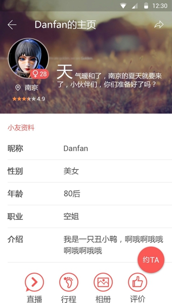 1、這是一個(gè)看臉的年代,所以我們?nèi)赂陌?,爆表顏值只為你的喜?br />2、功能更加貼心,更容易找到你想要的3、約上一個(gè)會(huì)玩的人一起出發(fā)