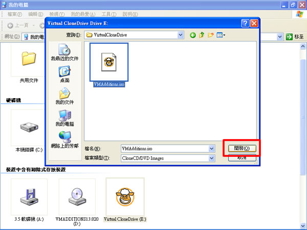 4.接著請(qǐng)找到要掛載的ISO檔(或ccd、.dvd、.img、.iso、.udf、.bin…等格式的光碟映像檔),選取之後按一下[開啟]按鈕,將其載入到虛擬光碟機(jī)中,載入之後便可像使用一般光碟機(jī)那樣的讀里面的資料。