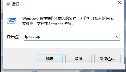 按Win+R打開運(yùn)行,輸入lpksetup,點(diǎn)擊回車