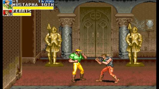 7,剛跳下城堡,對(duì)著正在下跳沒有落地的胖子一個(gè)倒勾腿,可以讓他再次飛天,定在墻上數(shù)秒,爽.有一個(gè)特殊的點(diǎn)打死他后出來的大餐可以勉強(qiáng)帶到關(guān)尾場景中作補(bǔ)血用.