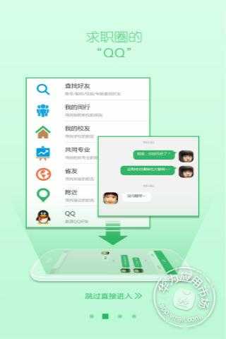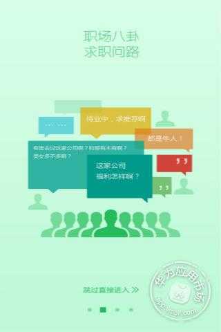 這是一款社交求職招聘的APP,在這里你可以找到公司老總,項(xiàng)目總監(jiān),HR,我的同行,省友,附近的人”給你不一般的求職體驗(yàn)!“無(wú)社交,不求職”