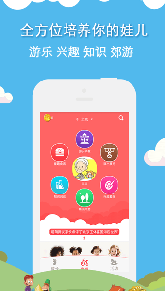 童玩兒是致力于為父母提供親子娛樂信息的軟件,信息內(nèi)容覆蓋中國大中城市。父母不僅可以在這里找到可以帶孩子去哪兒玩,還可以對孩子的成長有直觀的了解,并且可以看到其他父母和孩子都去哪里玩。我們希望可以幫助父母選擇出行消費場所,讓父母和孩子度過更多快樂時光。