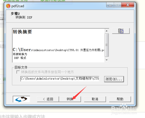 彈出的對(duì)話框中,下面的目錄為轉(zhuǎn)換成cad所存放的目錄,建議PDF文件和轉(zhuǎn)化的cad文件不要放在一個(gè)文件當(dāng)中,否則會(huì)出錯(cuò)。