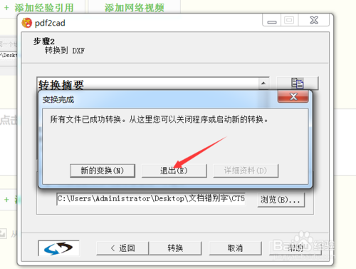 點(diǎn)擊“轉(zhuǎn)換”按鈕,轉(zhuǎn)換完成后出現(xiàn)二圖所示對(duì)話框,如果還有新的PDF轉(zhuǎn)換,就點(diǎn)擊“新的轉(zhuǎn)換”,如果沒(méi)有就點(diǎn)擊“退出”。