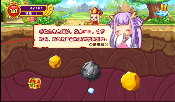 《西游總動員》中師徒四人在取經(jīng)的路上遇到重重困難,他們需要在盡情揮灑汗水在深埋著未知的寶藏的礦洞中挖掘出藏在其中的金子。游戲的整體難度并不是很高,玩家在游戲里可以扮演唐僧、悟空、龍女等,開著自己的礦車用搖晃的鉤子瘋狂的抓取藏在地下的寶箱、黃金、和鉆石。【操作方法】