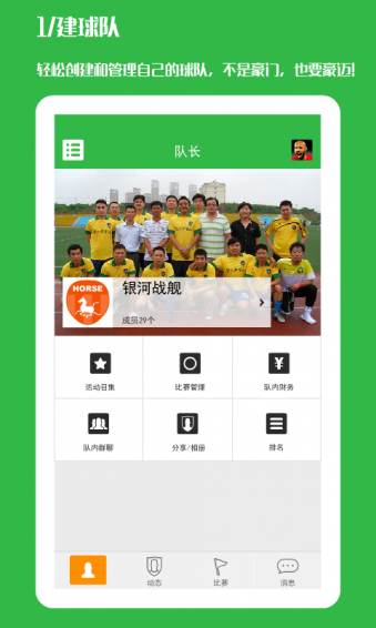 1、球隊(duì)主頁(yè)改版,圍繞比賽日程,顯示待辦事宜以及處理球隊(duì)其他事務(wù);