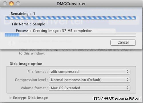 3、在鏡像的編碼中支援GZIP(速度快)和BZIP2壓縮(質(zhì)量高).DMGConverter是自由軟體,可免費發(fā)放及傳播使用(UB).相對于iDmg,DMGConverter更顯功能強大.但在UI方面略遜色于前者。