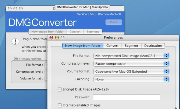 1、在軟體的偏好設(shè)置”Preferences”中可預(yù)設(shè)轉(zhuǎn)換的格式,輸出的路徑(默認(rèn)為桌面),鏡像是否加密及密碼設(shè)定,鏡像大小等等屬性.這適合重復(fù)制作鏡像文件的用戶使用。2、DMGConverter可定義文件適合的卷宗格式,支持區(qū)分大小寫的Mac OS X擴充格式(日志式);FAT16(32);UNIX檔案格式;UDF(Universal Disk Format)和Mac OS Standard等.