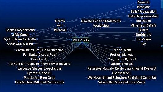 在發(fā)展的初期,網(wǎng)絡(luò)思維導(dǎo)圖的應(yīng)用程序非常原始,主題相關(guān)的連線非常粗糙且不支持如項(xiàng)目管理和演示這樣的高級功能?,F(xiàn)在,HTML5技術(shù)的發(fā)展產(chǎn)生了許多快速優(yōu)雅的應(yīng)用程序。比如,動態(tài)思維導(dǎo)圖軟件Thebrain。這是一款三維立體式的思維導(dǎo)圖工具,在導(dǎo)圖呈現(xiàn)的方式上擺脫了傳統(tǒng)平面方式的局限,同時它支持所有流行的在線服務(wù),上面的每個節(jié)點(diǎn)都可與相關(guān)網(wǎng)絡(luò)資源相連,在使用者眼里它就如同一個大腦一樣。所有的訪問都可以通過點(diǎn)擊或者輸入簡單字符來快速完成。