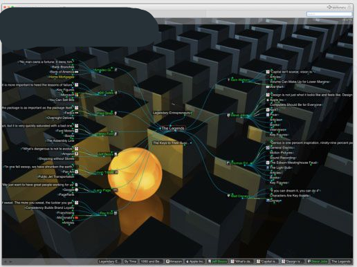 您有沒有想過用電腦來拼湊新的想法或者以一種更有意思的方式來拓展您的思維?TheBrain 能夠讓您的思維數(shù)字化,您可以很方便的以圖片和文字的方式看到您的想法和他們之間的聯(lián)系。一切來源于您生活中的想法都可以顯示在屏幕上并顯示其間的聯(lián)系,給您一個思考和行為的環(huán)境。