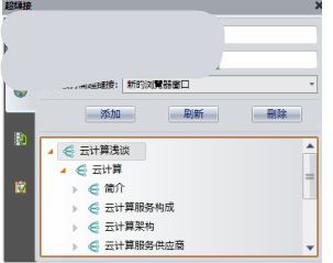 添加到標(biāo)題的超鏈接時,不需要輸入地址,而是需要從下面的標(biāo)題樹中選擇。如果標(biāo)題樹沒有反映最新的標(biāo)題,點(diǎn)擊“刷新”按鈕。其他同上,最后點(diǎn)擊“添加”按鈕。