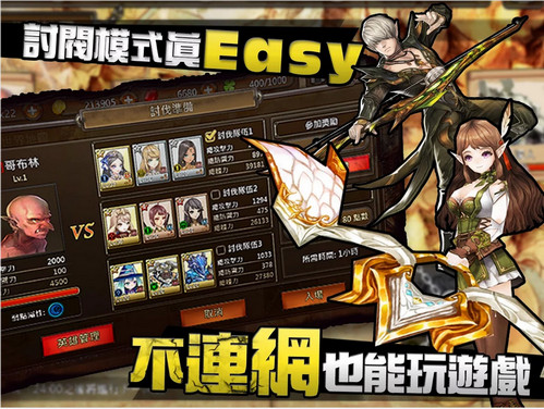 戰(zhàn)士、騎士、法師、牧師、弓箭手、獸人6大職業(yè)組合自由搭配,百種技能設(shè)定,百件裝備武器,緊湊戰(zhàn)斗,暢快連擊,隨叫隨支援的伙伴,是你絶對(duì)不能無視的勝利條件,組成英雄隊(duì)伍,招喚你強(qiáng)力的伙伴,應(yīng)對(duì)各類型戰(zhàn)斗。