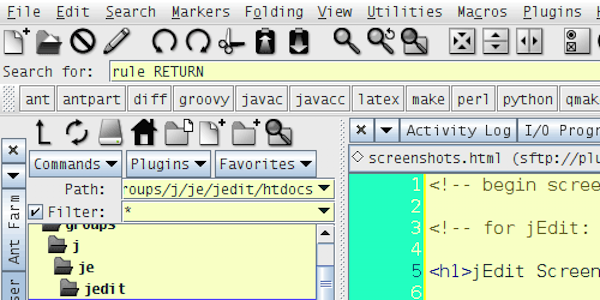 jedit mac是一個(gè)用java編寫的源碼開放的文本編輯器,支持Windows、Linux、Mac OS等等平臺(tái),支持80多種文件類型的文法加亮顯示和UTF-8在內(nèi)的多種字符編碼,強(qiáng)大到令人無(wú)法呼吸。