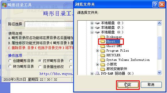 畸形目錄管理工具(deformitydir) 綠色版 雨林木風的OneKey ghost四周年紀念版會自動將備份文件夾安放在第一硬盤的最后一個分區(qū)的根目錄里,文件夾名:Ghost.. 文件夾內(nèi)備份文件名:C_WinXP.GHO 擴展名:.GHO 文件大小約:2-8G不等。為防止不小心刪除,該文件夾為畸形目錄文件夾,不用特別的方法是刪不掉打不開的。那么可以使用本工具,對畸形文件夾進行刪除。