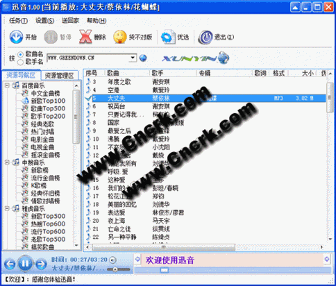 迅音 V2.11 簡體中文綠色免費(fèi)版 這是一款方便用戶快速搜歌、迅速下歌、高效管歌、輕松聽歌、智能傳歌的MP3音樂軟件。在搜歌上,全面集成了百度、中搜、雅虎、狗狗多家搜索引擎的榜單和歌曲。在下歌上,支持類迅雷的P2SP下載技術(shù)。在管歌上:支持歌曲自動分類和播放列表管理。在聽歌上,內(nèi)嵌MediaPlayer播放器,并外接千千靜聽等多種主流播放器。在導(dǎo)歌上,支持對MP3的自動濾重的智能歌曲導(dǎo)出
