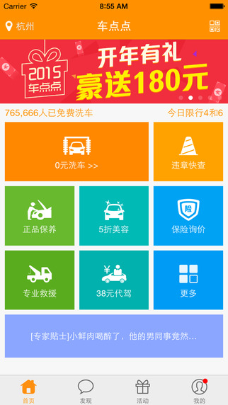 車點(diǎn)點(diǎn)app成為認(rèn)證車主之后送180元抵用金,洗車、保養(yǎng)、美容等服務(wù)統(tǒng)統(tǒng)可抵用!這認(rèn)證之后就可以免費(fèi)洗車一次。分享到微信好友、微信朋友圈、微博,即可找好友一起搖落抵用金、免費(fèi)洗車券等豪禮!《微信0元洗車》活動(dòng),分享到微信好友、微信朋友圈,召集7個(gè)微信好友幫您擦車,即可獲得免費(fèi)洗車券一張!
