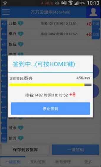 簽到過程中可以按手機"HOME"鍵,后臺簽到。