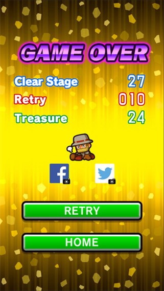 如果Bob不慎碰到尖刺或者怪獸,游戲?qū)㈦S之結(jié)束。地面或者普通墻壁,即使碰撞到也不會(huì)影響游戲。