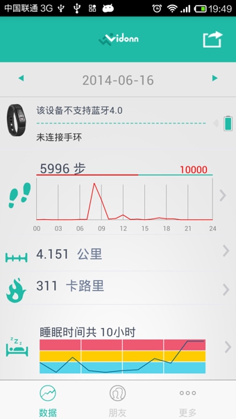 “唯動(Vidonn)”--智能手環(huán)是一款可穿戴式智能設(shè)備,內(nèi)含三維動態(tài)感應(yīng)器、振動馬達(dá)等。用戶通過佩戴這款手環(huán),可以記錄日常生活中的鍛煉、睡眠等實(shí)時(shí)數(shù)據(jù)。該手環(huán)可以與智能手機(jī)或PC通過藍(lán)牙無線同步,起到通過數(shù)據(jù)引導(dǎo)健康生活方式的作用。用戶可以通過手機(jī)應(yīng)用隨時(shí)查看,了解自己的運(yùn)動及睡眠數(shù)據(jù),并可以分享數(shù)據(jù)、還可以通過加好友進(jìn)行互動。用戶的運(yùn)動數(shù)據(jù)還能獲得積分,積分用于和好友PK以及換取禮物、抽獎等,讓運(yùn)動趣味化、娛樂化。【軟件特點(diǎn)】