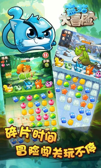 藍(lán)貓大冒險(xiǎn)是一款喚起童年的休閑類消除游戲,講述了可愛的藍(lán)貓和它的小伙伴們結(jié)伴冒險(xiǎn),一步步破除阻礙經(jīng)歷四季和不同場景的歷險(xiǎn)故事。經(jīng)典多彩的卡通元素,可愛清新的游戲界面,爽快多變的關(guān)卡玩法,火熱千萬玩家,你不能錯(cuò)過!【游戲特色】