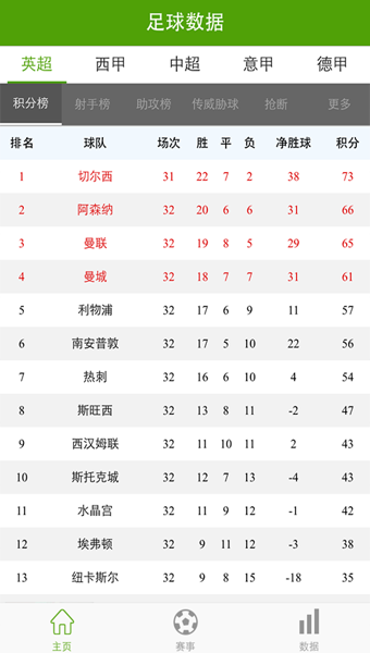 3.詳細(xì)數(shù)據(jù)頻道讓你的球隊(duì)?wèi)?zhàn)績盡在掌握