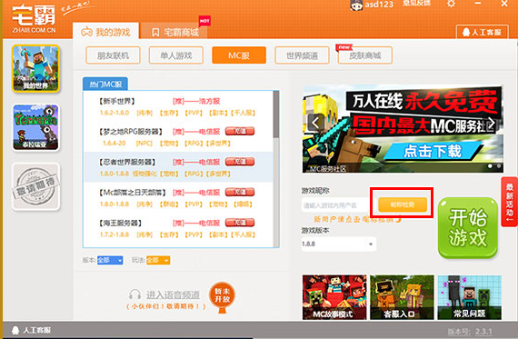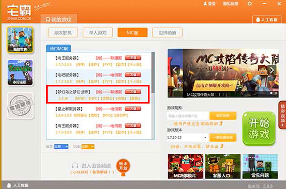 宅霸MC服務(wù)器連接方法:1、選擇您想進(jìn)入的MC服務(wù)器