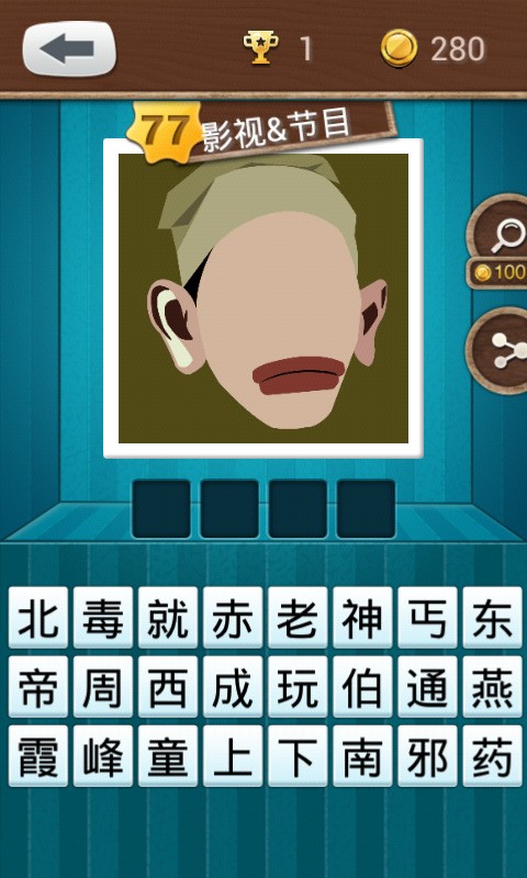 3、和其它猜圖游戲一樣,上方為圖片,下方為文字提示;