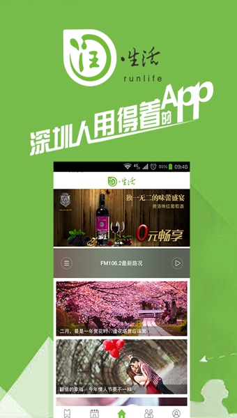 潤(rùn)生活A(yù)pp是一款專為深圳人打造的“好用、好玩、好看、有驚喜”的隨時(shí)隨身移動(dòng)互聯(lián)產(chǎn)品。該軟件1.0版本目前僅面向深圳地區(qū)用戶,其特色功能有,深圳地區(qū)交通路況查詢的106.2路況信息、各類門票免費(fèi)搶的發(fā)票、周末娛樂好推薦的星期八、聚集父母的親子玩樂討論的遛娃圈四大功能,是一款深圳人用得著的APP,并為你創(chuàng)造品質(zhì)生活。【軟件特點(diǎn)】
