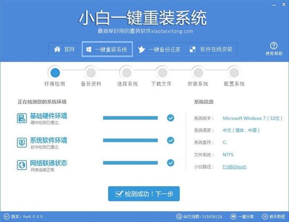 作為系統(tǒng)重裝軟件中的佼佼者,小白一鍵重裝系統(tǒng)工具以體積小、免安裝、易操作等特點(diǎn)成為目前最簡(jiǎn)單好用的系統(tǒng)重裝軟件。小編草擬了這個(gè)小白一鍵重裝系統(tǒng)win7版使用教程,讓大家對(duì)重裝win7系統(tǒng)帶來(lái)方便。1、下載打開小白一鍵重裝系統(tǒng)工具,點(diǎn)擊“立即重裝系統(tǒng)”,軟件開始自動(dòng)檢測(cè)電腦,確保重裝前的環(huán)境良好。沒有問題后點(diǎn)擊下一步