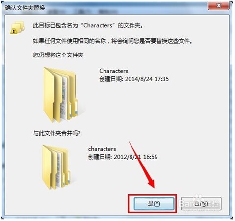 4、接著在彈出的“合并文件夾”窗口中,直接點擊“是”按鈕進行文件夾合并操作。