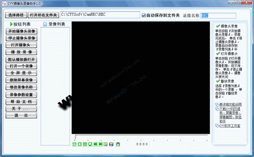 CYY攝像頭錄像助手 V3.6 綠色免費版 CYY攝像頭錄像助手是一款視頻攝像頭錄像軟件,可用攝像頭實時制作視頻電影文件,隨時播放觀看。方便實用的視頻錄像軟件。