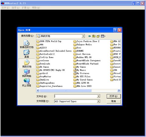 接下來設(shè)置游戲庫文件夾,加載游戲。點擊左上的文件選項,選擇第一個選項打開ROM。