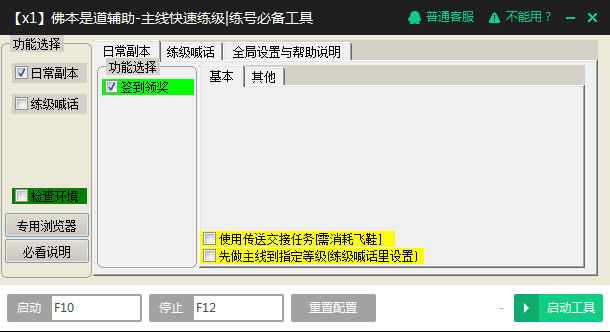 1、【x1】佛本是道輔助-主線快速練級(jí)|練號(hào)必備工具功能:【兼容win7/xp】【一鍵主線30/任意等級(jí),穩(wěn)定快速】【簽到獎(jiǎng)勵(lì)】【自動(dòng)喊話】【更多功能增加中】