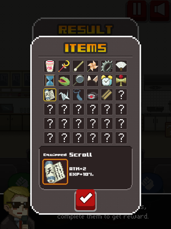 游戲的操作方式很有意思,屏幕下方有4個(gè)不同顏色的攻擊按鈕,而正中間的那個(gè)小小的類似于紅綠燈的東西,就是告訴我們應(yīng)該按那些顏色攻擊按鈕的提示區(qū)域。例如:中間顯示的是藍(lán)綠,那么我們只要按照提示依次按下藍(lán)色的拳頭按鈕和綠色的拳頭按鈕,就可以快速破壞當(dāng)前目標(biāo),而不用依賴初期比較低的攻擊力去一下下慢慢磨血。這是游戲的核心系統(tǒng),也就是讓玩家按照提示來迅速而正確地進(jìn)行按鍵操作。