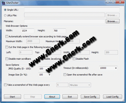 SiteShoter V1.41 英文綠色免費(fèi)版 SiteShoter 是一款將屏幕上的網(wǎng)頁(yè)自動(dòng)檔案的軟件。自動(dòng)創(chuàng)建隱藏窗口的Internet Explorer 的功能,載荷理想的網(wǎng)頁(yè),可將整個(gè)網(wǎng)頁(yè)轉(zhuǎn)化成鏡像文件