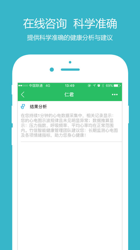【心電儀】您可以使用極簡(jiǎn)心電,花一分鐘隨時(shí)隨地檢測(cè)自己的心臟健康狀況,通過(guò)大數(shù)據(jù)分析,為個(gè)人心臟健康建立數(shù)據(jù)模型,提示健康風(fēng)險(xiǎn),還可以根據(jù)極簡(jiǎn)心電給出的健康評(píng)估和指引,優(yōu)化自己的生活方式,從而實(shí)現(xiàn)對(duì)自身健康的科學(xué)管理。