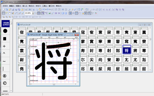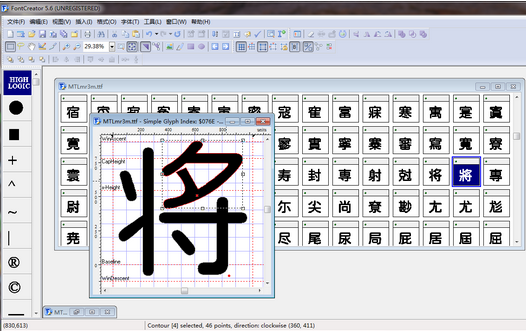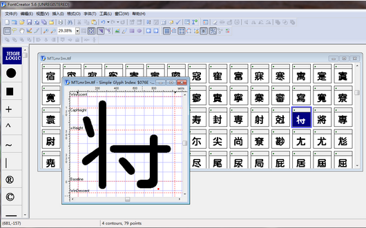 android手機的字體不同于PPC和塞班的一個完整的ttf字庫,他的簡體、繁體等各部分應(yīng)用的字體是分開的,我的理解是當(dāng)編碼重復(fù)或沖突時易導(dǎo)致顯示錯亂,有時候還會出現(xiàn)幾個替換后的字夾帶幾個原自帶字體,比如我的這個cm7的rom包里的字體不能正確顯示“將”字,用FontCreator逐個打開字庫查看(這類字庫不顯示字符的Unicode編碼,查找不便),發(fā)現(xiàn)DroidSansFallback.ttf字體文件的“將”字是正確的,而在MTLmr3m.ttf文件里顯示的就是圖上那個字,