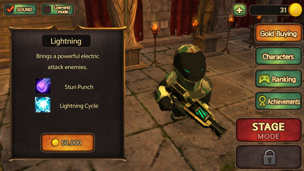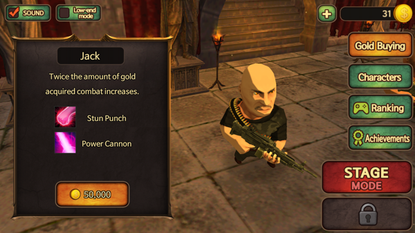 炮手地牢 Gunner Of Dungeon》是 toppinggames 推出的一款生存射擊類作品,盡管本作看上去顯得有些小眾,甚至游戲圖標(biāo)看著有幾分猥瑣,不過作為生存游戲中的一員,《炮手地牢》還是牢牢把握住了該玩法的核心,在游戲中玩家將會挑戰(zhàn)一個又一個充滿怪物的地牢,直至精盡人...直至筋疲力盡為止!這款作品沒有什么內(nèi)涵,一上來就是選擇角色參戰(zhàn),不同的角色攻擊手法會有一些不同,個人還是比較偏愛拿激光*的大叔(雖然我看不到他的臉),當(dāng)然這個還是要看個人的喜好了。游戲分為闖關(guān)和無盡兩種模式,從字面上就很好理解了,小編就不贅述了。