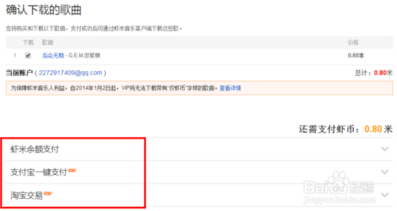 5、除了免費下載之外,點擊支付寶一鍵下載或者淘寶交易需要付費下載歌曲。